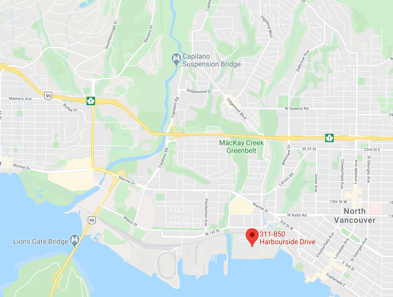 We are located at 311-850 Harbourside Dr, North Vancouver, BC, V7P 0A3